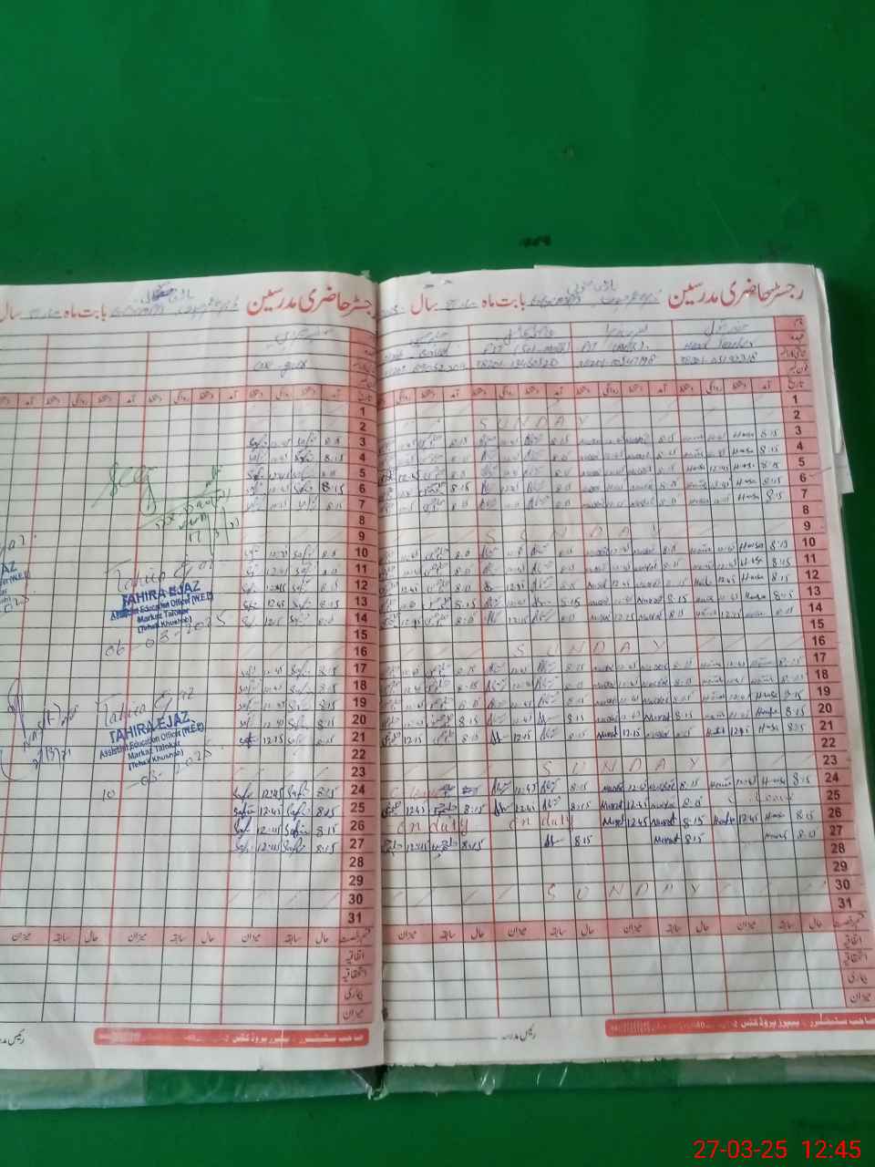 | CNIC | Full Name | Designation | R/C | Absence During Last Calender Month |