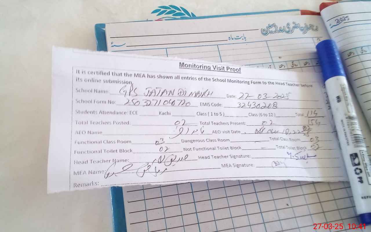 | EMIS Code: 32430208 | Name of School: GPS JATAN DI MAIRH | |||