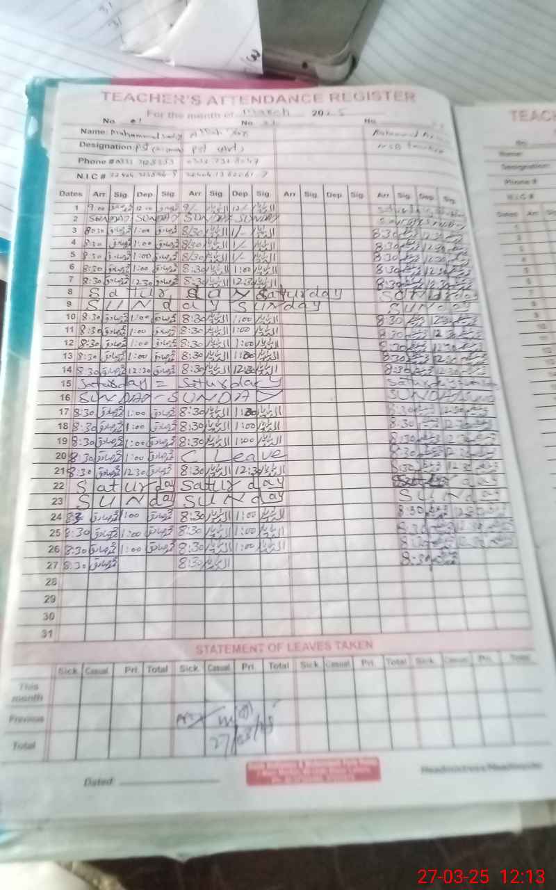 | Name: Mu**** Sa**** Designation: (School Headmaster's/Headmistress's) ESE (ART) Phone/Cell Number: 03**** |