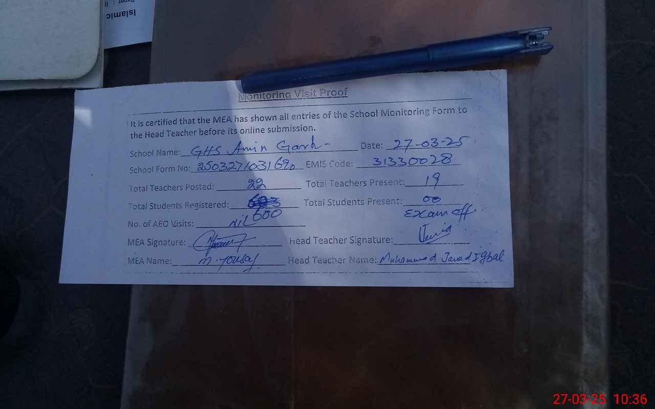 | EMIS Code: 31330028 | Name of School: GHS AMIN GARH | |||