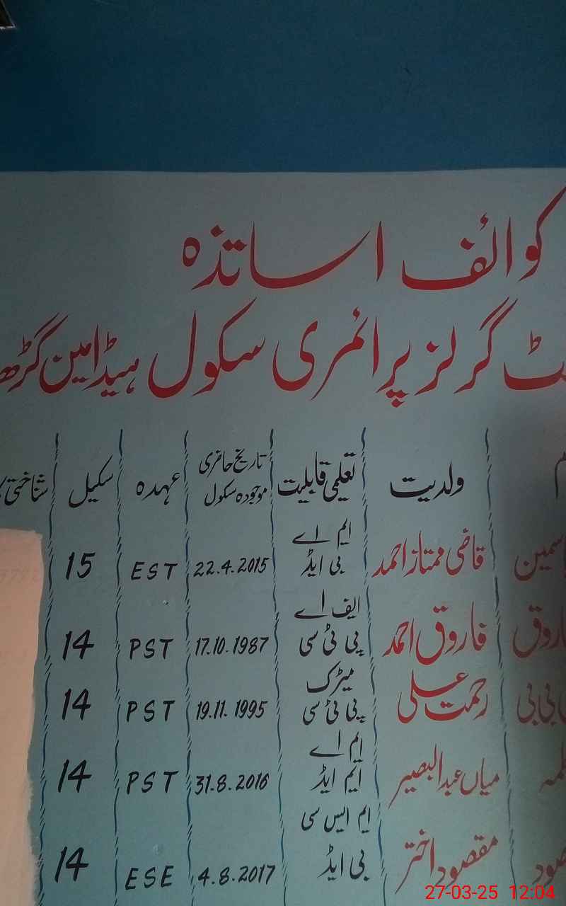 | District: RAHIMYAR KHAN | Tehsil: RAHIMYAR KHAN | Markaz: AMIN GARH - FEMALE | Level: Primary | |