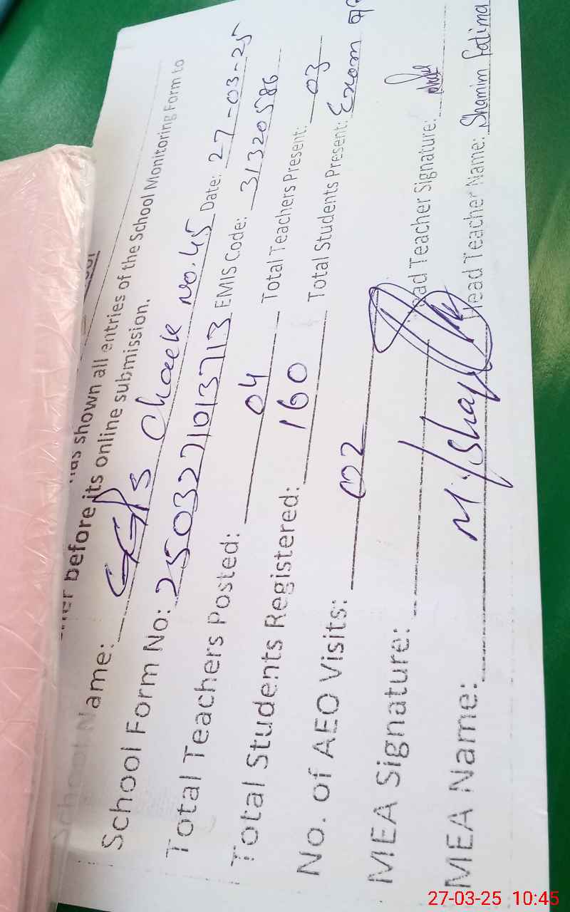 | EMIS Code: 31320586 | Name of School: GGPS CHAK NO.45/A | |||