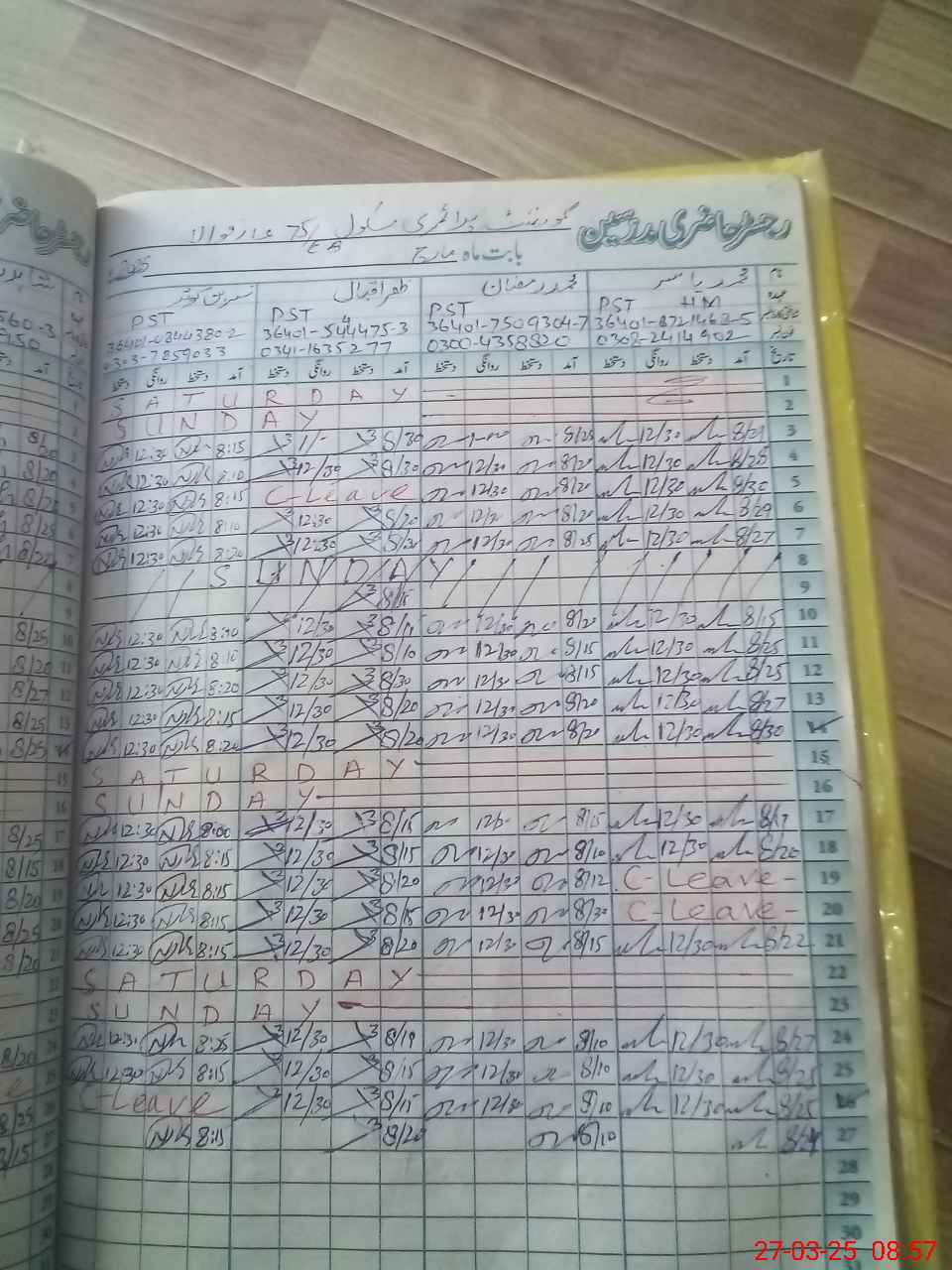| CNIC | Full Name | Designation | R/C | Absence During Last Calender Month |