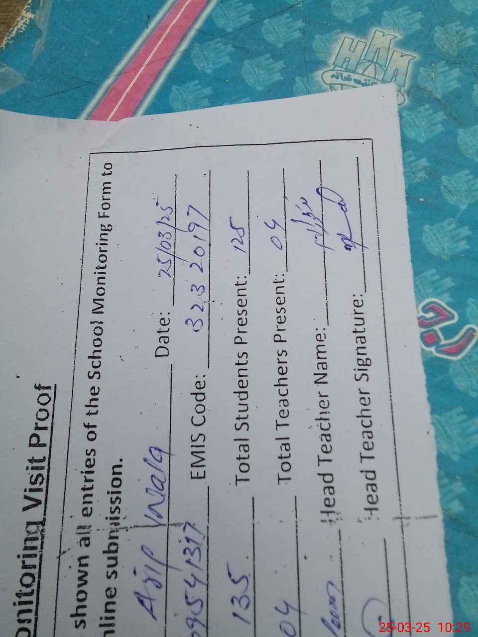 | EMIS Code: 32320197 | Name of School: GPS ARIF WALA | |||