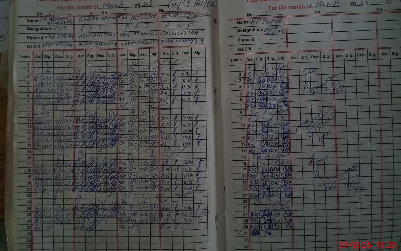 | CNIC | Full Name | Designation | R/C | Absence During Last Calender Month |