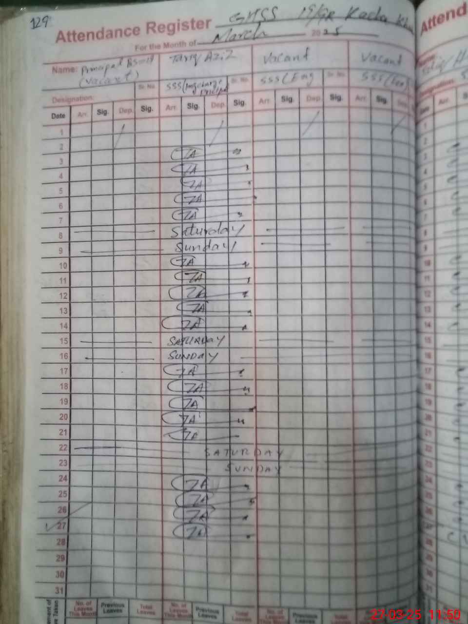 | 36**** | Mu**** Sa**** | 3 | 1 | 0 | 0 | 0 | 0 | 0 | 0 | 0 | 0 | 0 | Exam Duty |