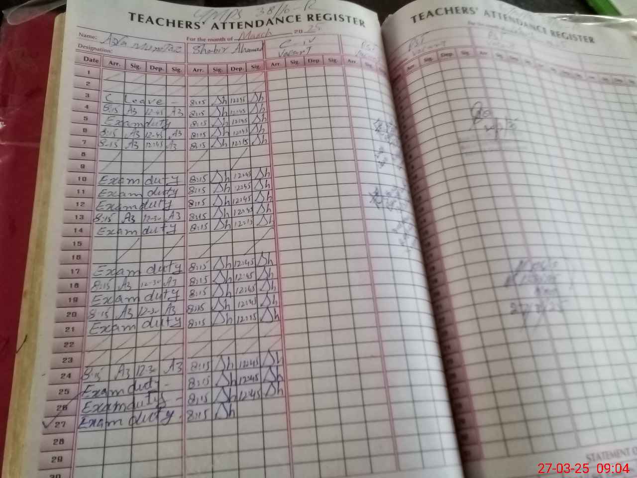 | 36**** | Az**** Mu**** | 1 | 1 | 0 | 0 | 0 | 0 | 0 | 0 | 0 | 1 | Exam Duty | |