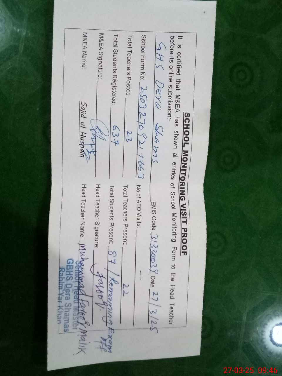 | EMIS Code: 31330039 | Name of School: GHS DERA SHAMAS | |||