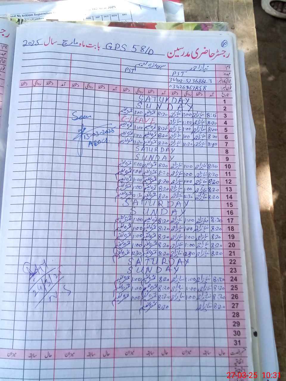 | Name: Sy**** Sa**** Na**** Designation: (School Headmaster's/Headmistress's) PST Phone/Cell Number: 03**** |