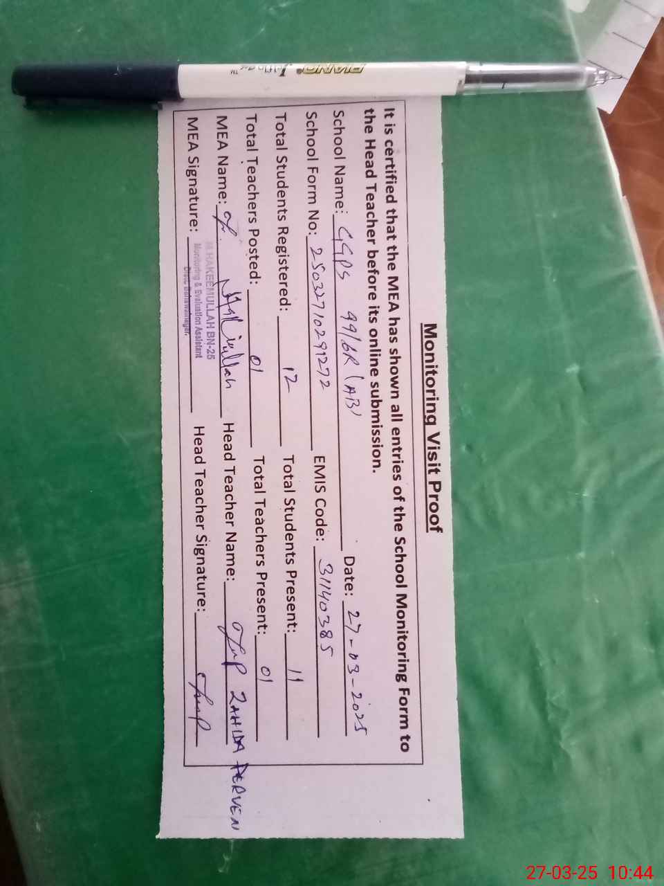 | EMIS Code: 31140385 | Name of School: GGPS CHAK 99/6-R AB | |||