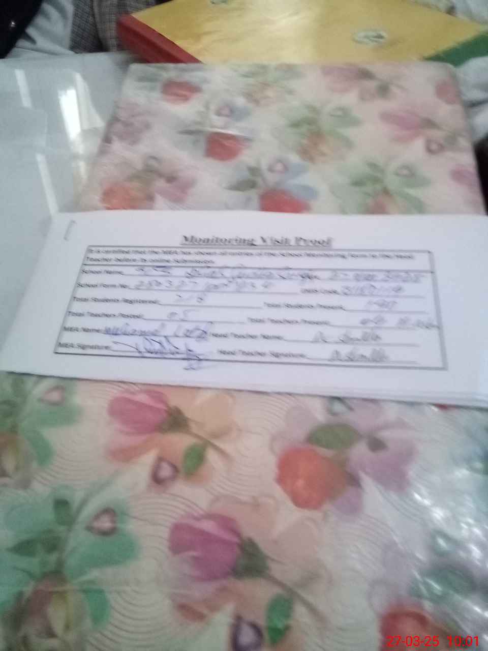 | Certified that this School was Inspected by the Undersigned MEA/DMO Today and the Information Stated Above is as Per Record. | |||||