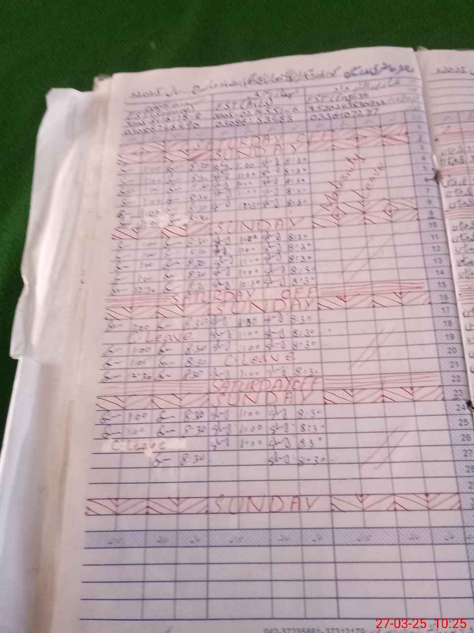 | 31**** | Sh**** Ta**** | PST | Regular | 0 | 0 | 0 | 0 | 0 | 0 | 0 | 0 | 0 | Exam Duty |