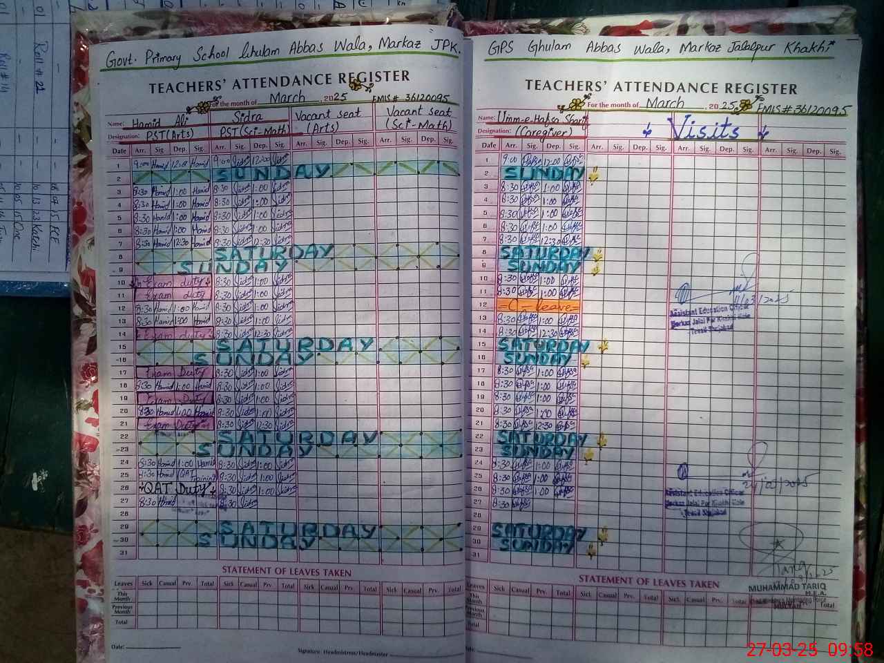| Name: Ha**** Al**** Designation: (School Headmaster's/Headmistress's) PST Phone/Cell Number: 03**** |