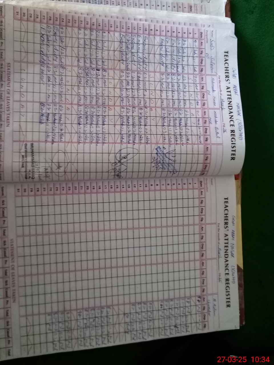 | 36**** | Sa**** Sa**** | 2 | 2 | 0 | 0 | 0 | 0 | 0 | 0 | 0 | 0 | 0 | Exam Duty |