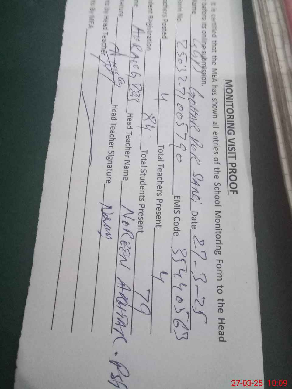 | EMIS Code: 35440563 | Name of School: GGPS GOHAR PUR SANI | |||