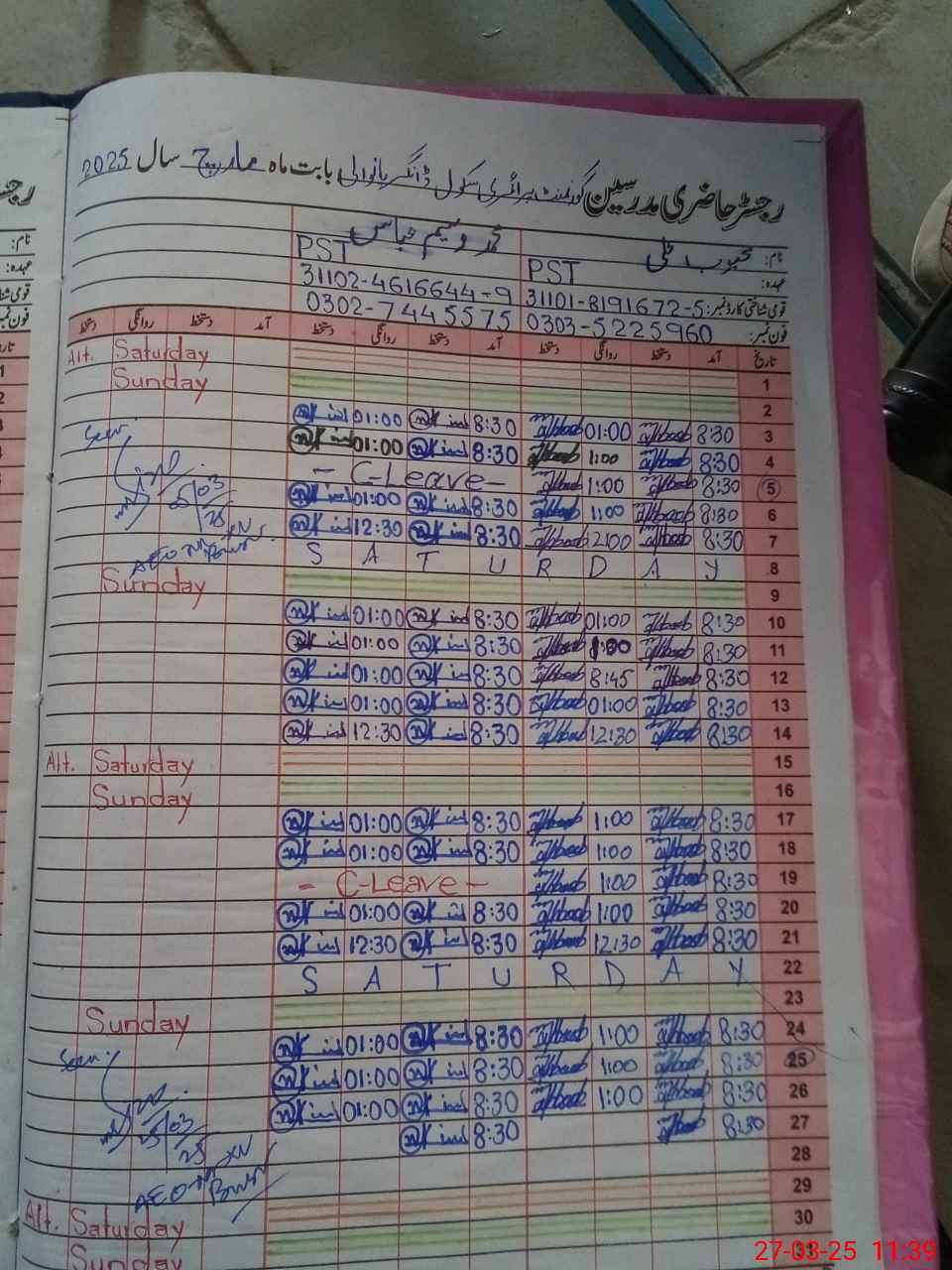 | CNIC | Full Name | Designation | R/C | Absence During Last Calender Month |
