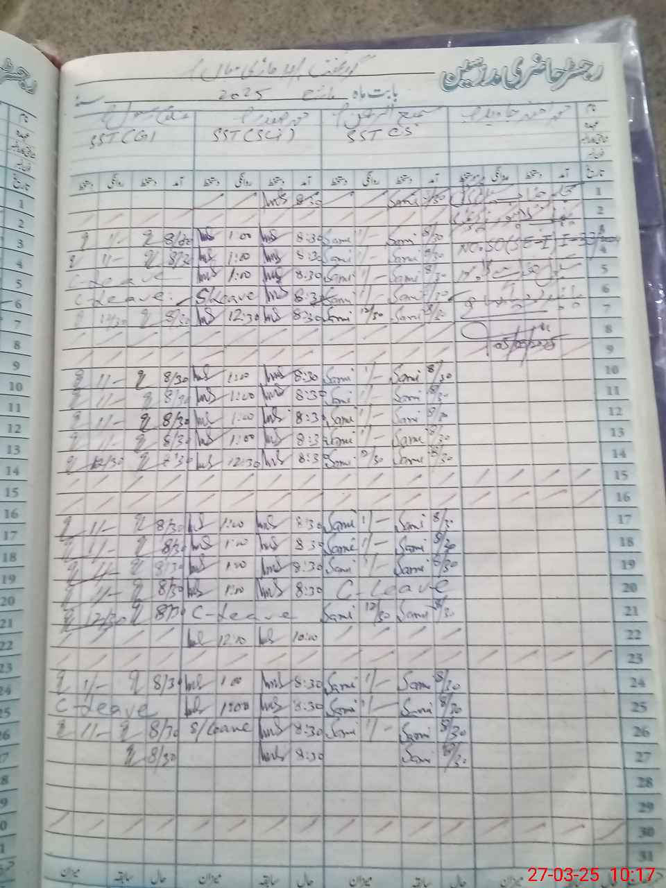 | CNIC | Full Name | Designation | R/C | Absence During Last Calender Month |