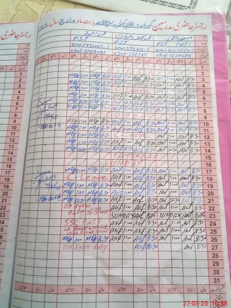 | 31**** | Mu**** Ej**** | PST | Regular | 0 | 0 | 0 | 0 | 0 | 0 | 0 | 0 | 0 | Exam Duty |