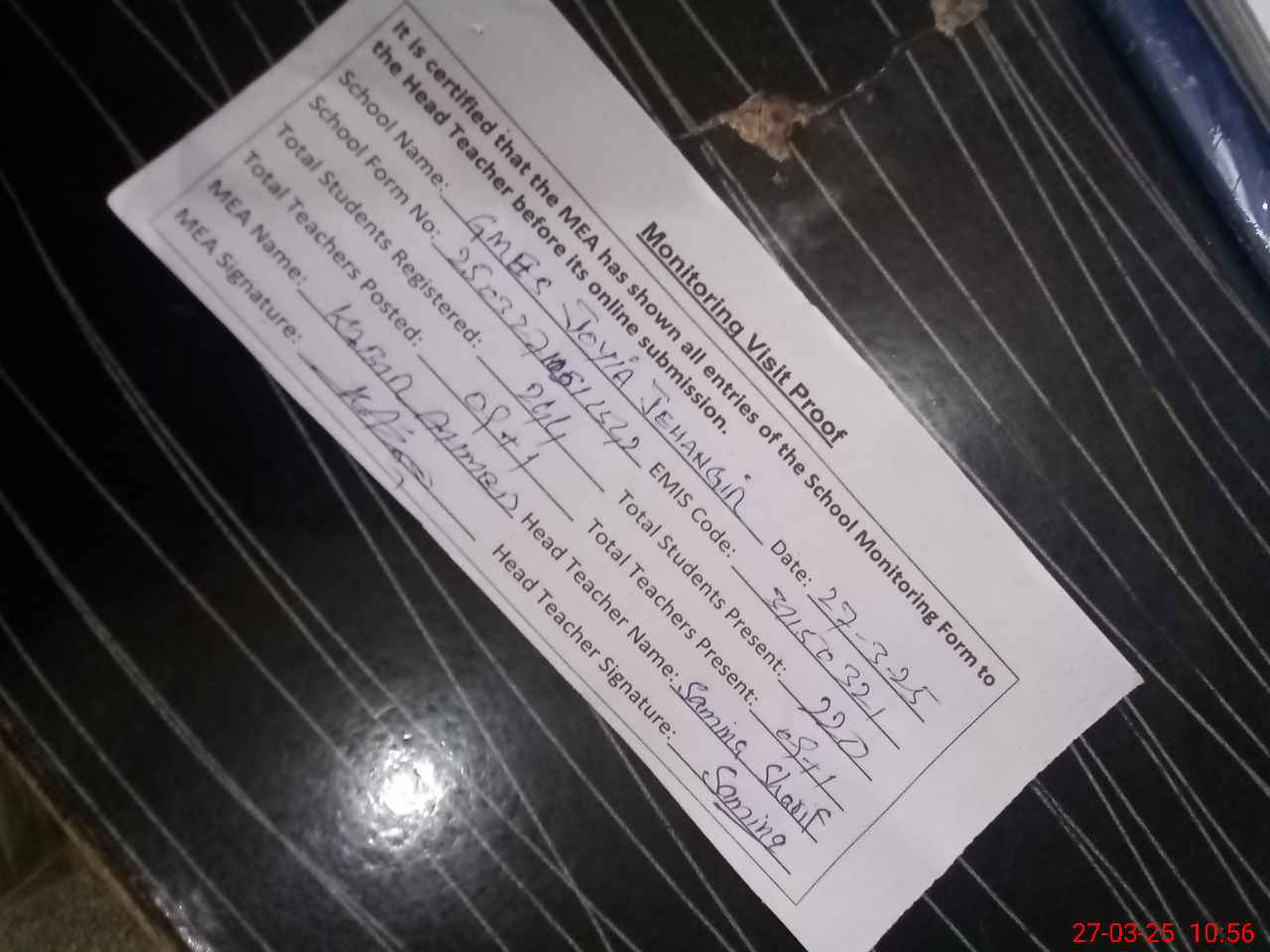 | EMIS Code: 31150321 | Name of School: GMHS JOYIA JAHANGIR | |||
