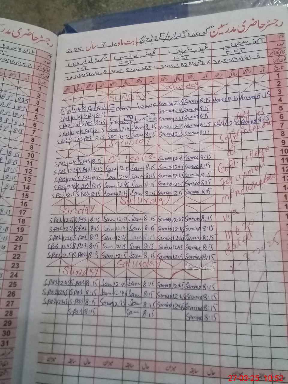 | 31**** | Am**** Sa**** | SESE | Contract | 0 | 0 | 0 | 0 | 0 | 0 | 0 | 0 | 0 | Exam Duty |