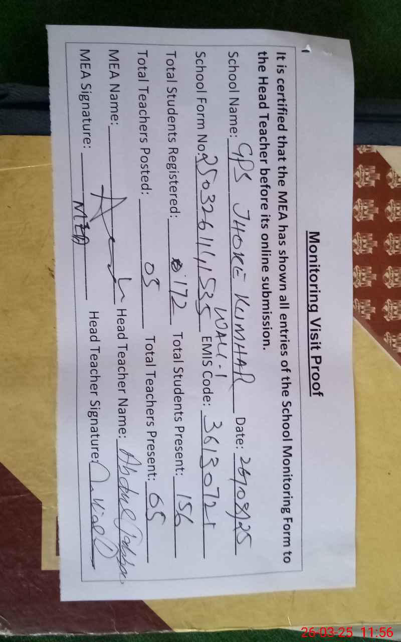 | EMIS Code: 36130721 | Name of School: GPS JHOKE KUMAR WALI NO. 1 | |||