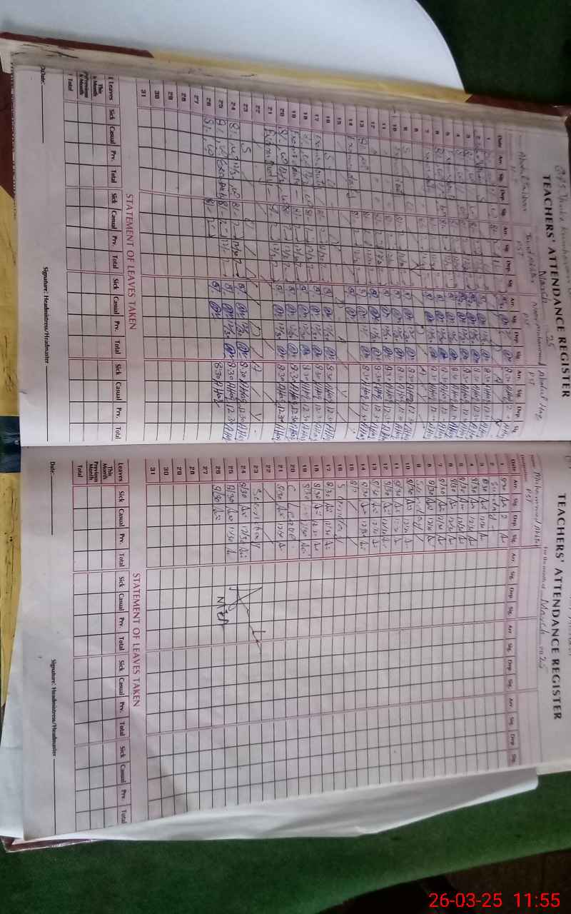 | No. of Students Present - Male | 0 | 0 | 0 | 0 | 0 | 0 | 10 | 13 | 9 | 0 | 0 | 32 | ||||