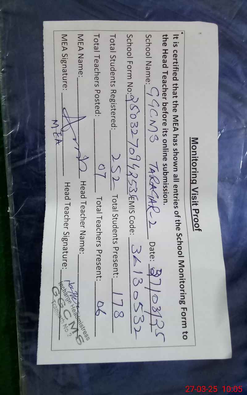| EMIS Code: 36130532 | Name of School: GGCMS TARAGAR NO.2 | |||