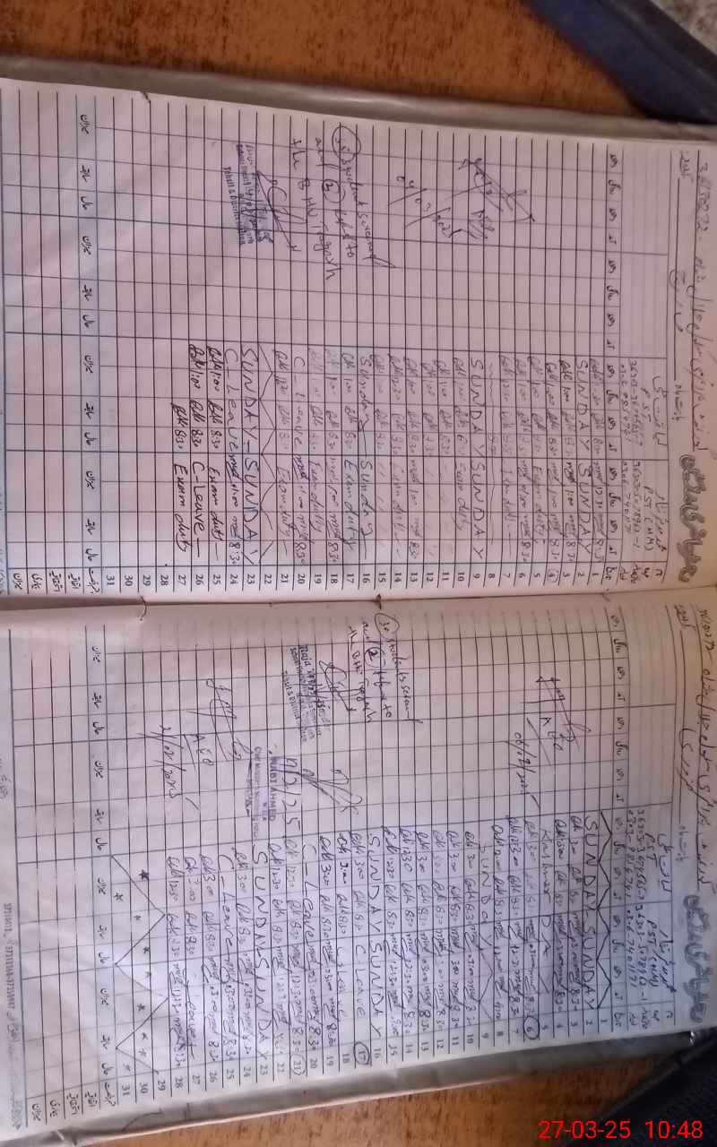 | CNIC | Full Name | Designation | R/C | Absence During Last Calender Month |
