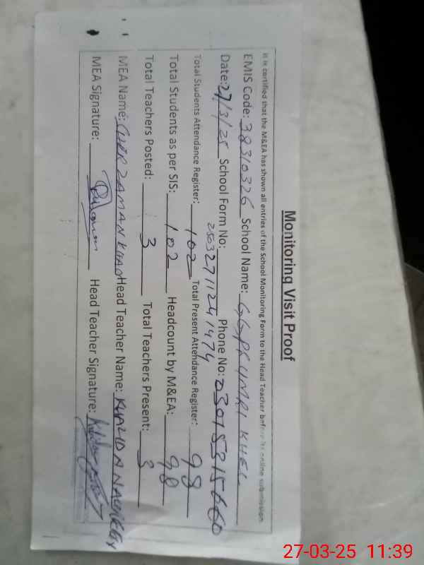 | EMIS Code: 38310326 | Name of School: GGPS UMRI KHEL | |||