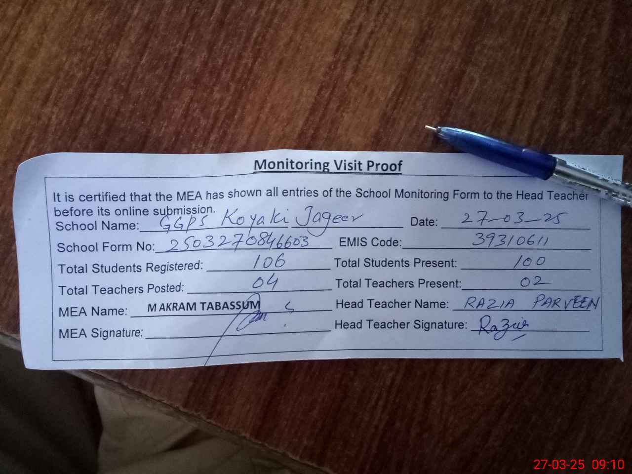 | EMIS Code: 39310611 | Name of School: GGPS KUAYKI JAGEER | |||