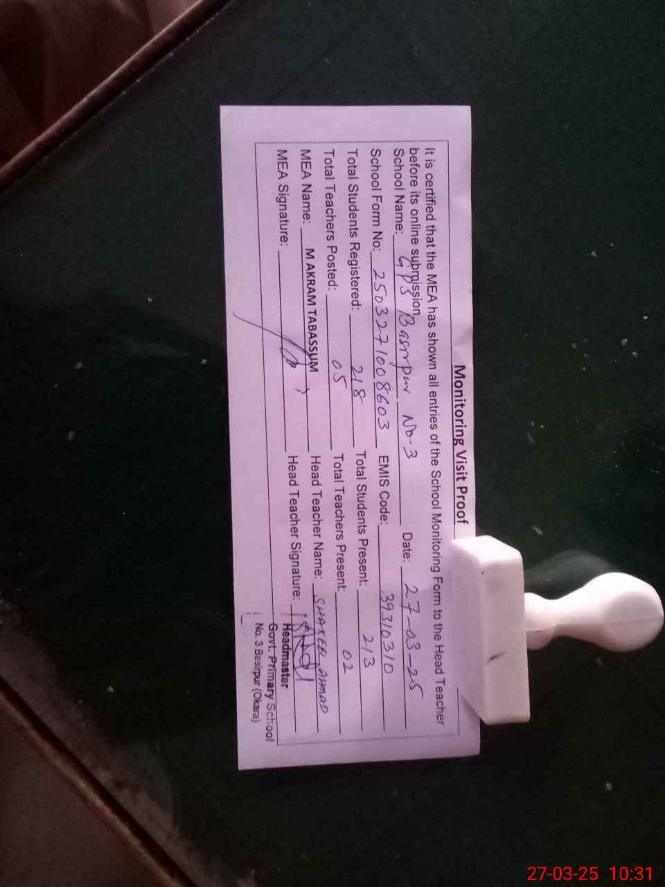 | EMIS Code: 39310310 | Name of School: GPS BASIR PUR NO. 3 | |||