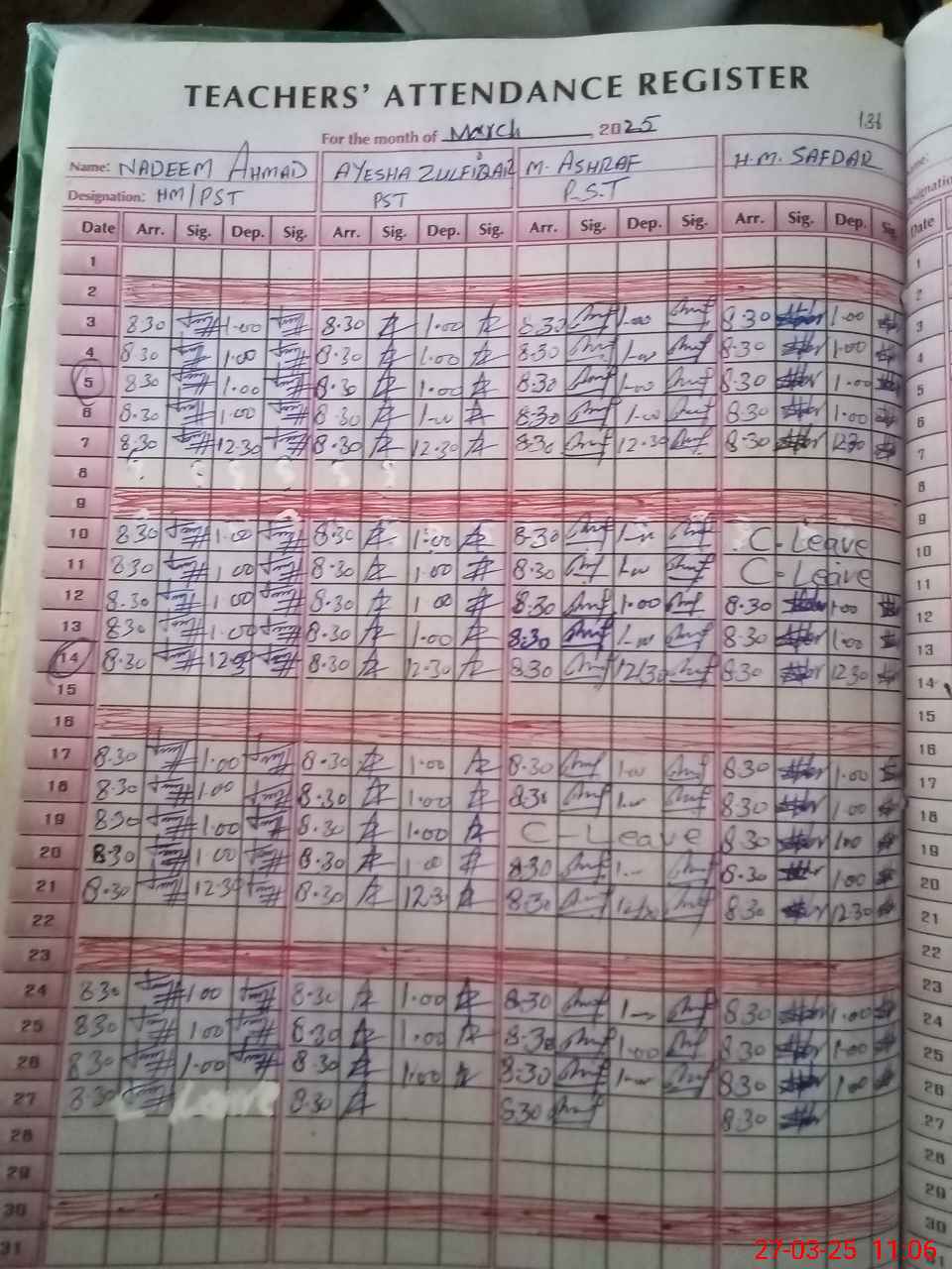 | CNIC | Full Name | Designation | R/C | Absence During Last Calender Month |