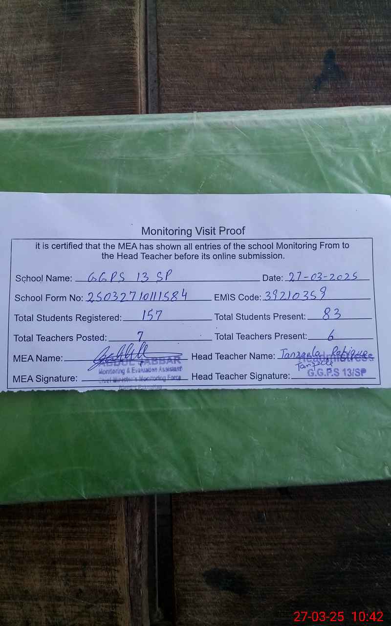 | EMIS Code: 39210359 | Name of School: GGPS 13 SP | |||