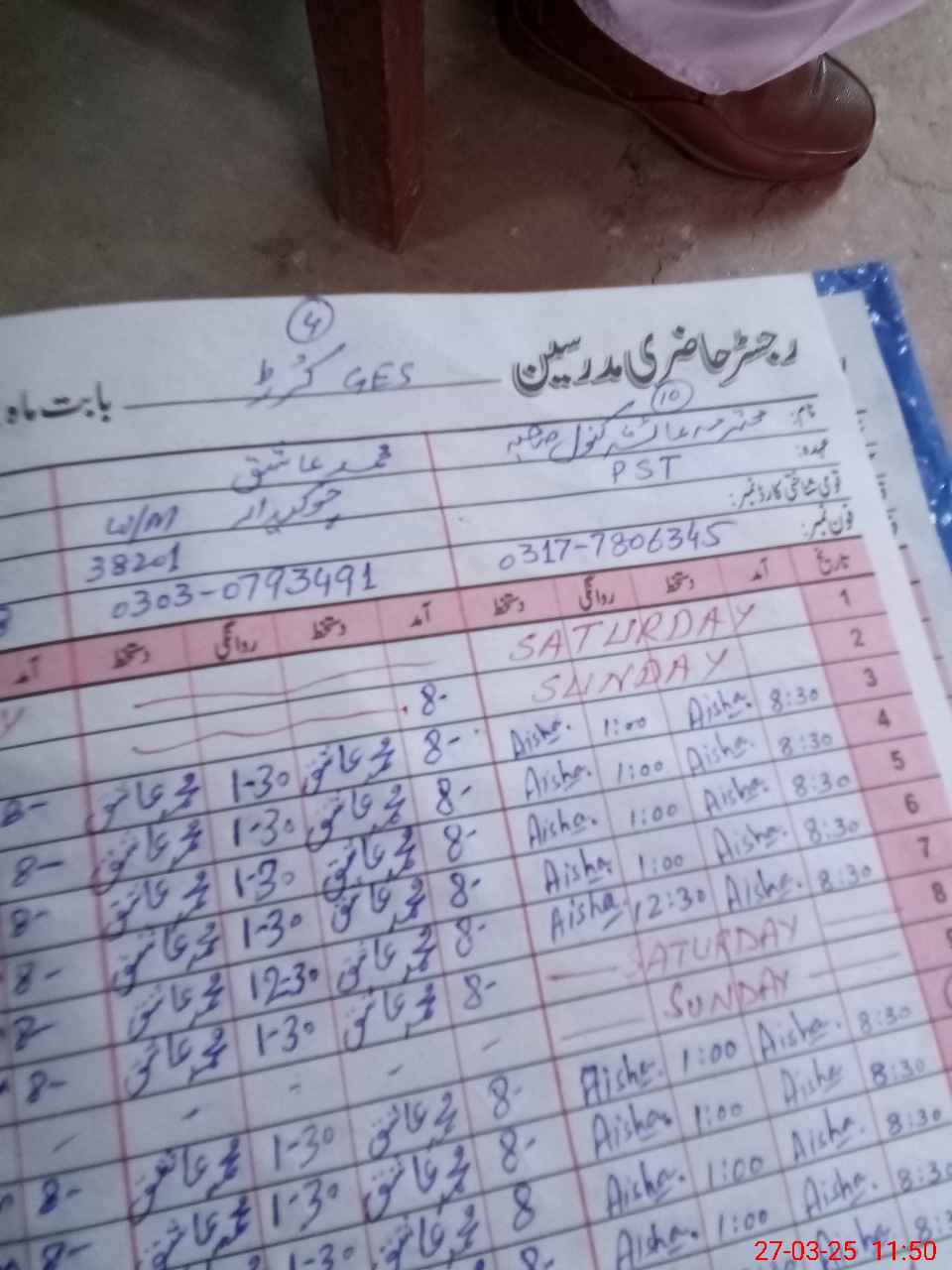 | 61**** | Mu**** Am**** Kh**** | EST(ENGLISH) | Temporary | 0 | 0 | 0 | 0 | 0 | 0 | 0 | 0 | 0 | Casual |