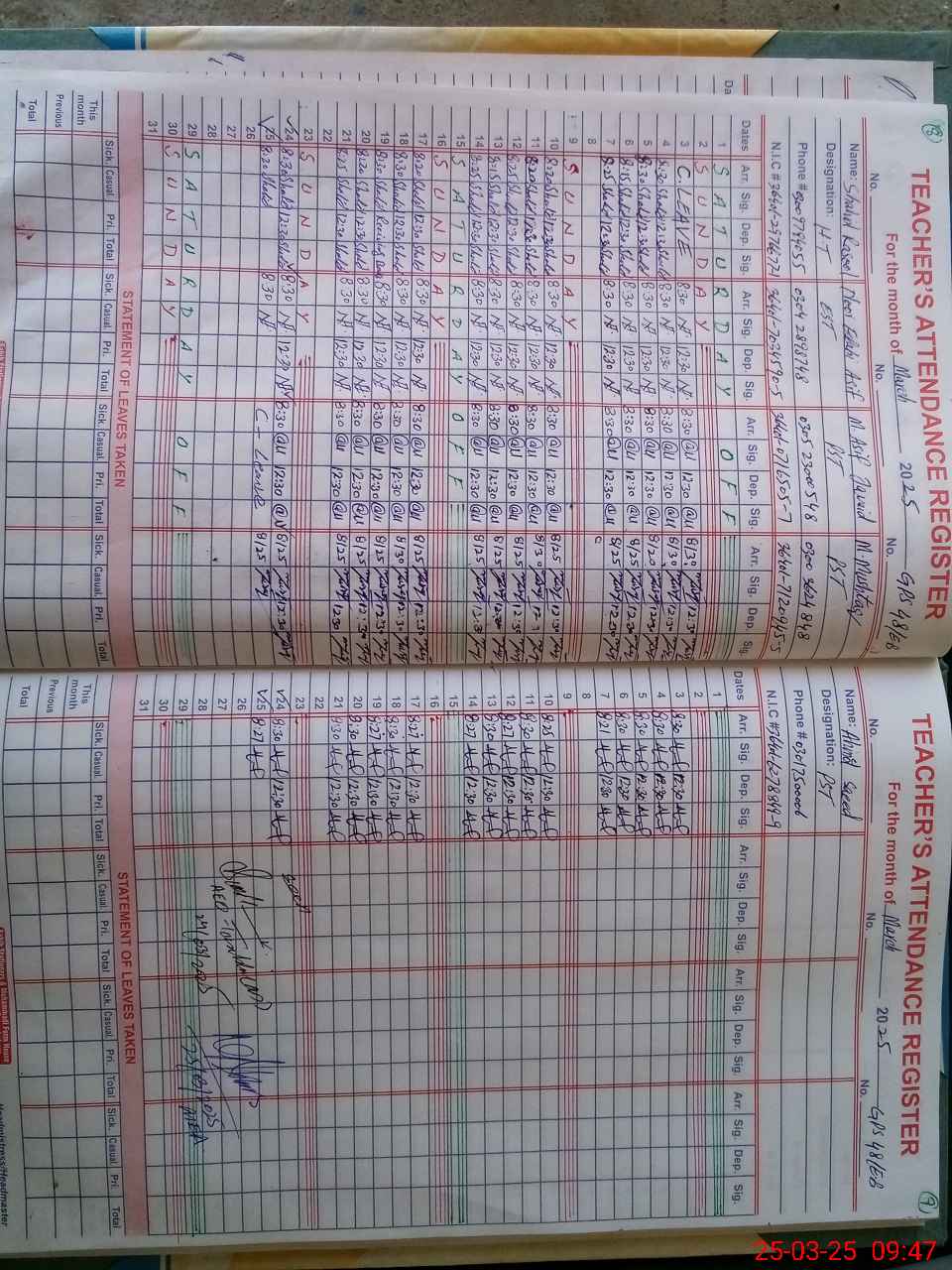 | Name: SH**** RA**** Designation: (School Headmaster's/Headmistress's) PST Phone/Cell Number: 03**** |