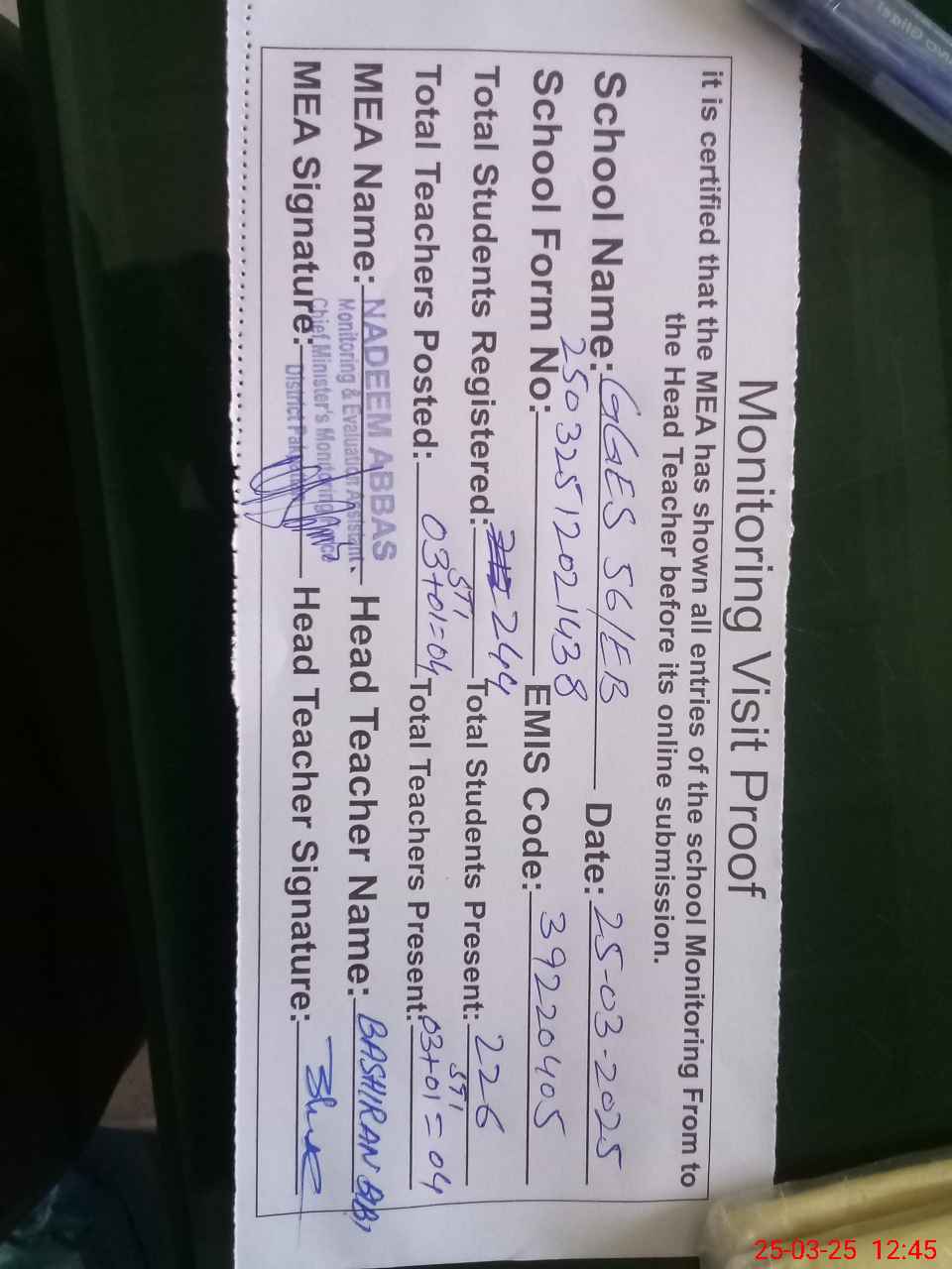 | EMIS Code: 39220405 | Name of School: GGES 56 EB PO DILU WALA BANGLA | |||