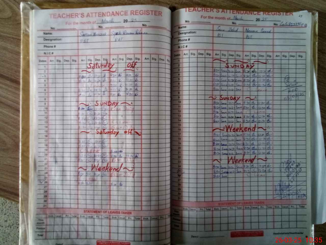 | Name: SA**** MA**** Designation: (School Headmaster's/Headmistress's) PST Phone/Cell Number: 03**** |