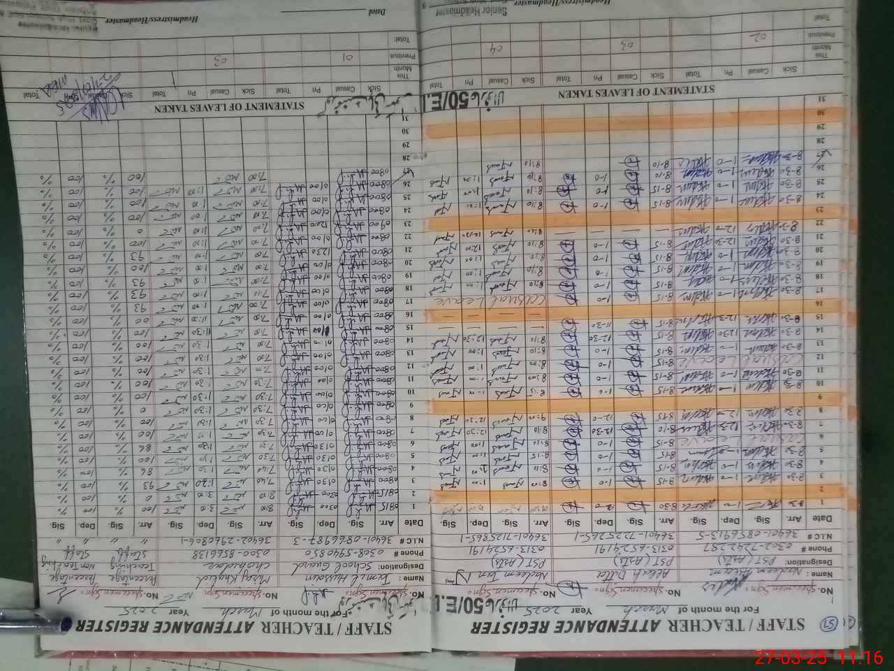 | 36**** | Ab**** Ra**** | 1 | 3 | 0 | 0 | 0 | 0 | 0 | 0 | 0 | 3 | Exam Duty | |