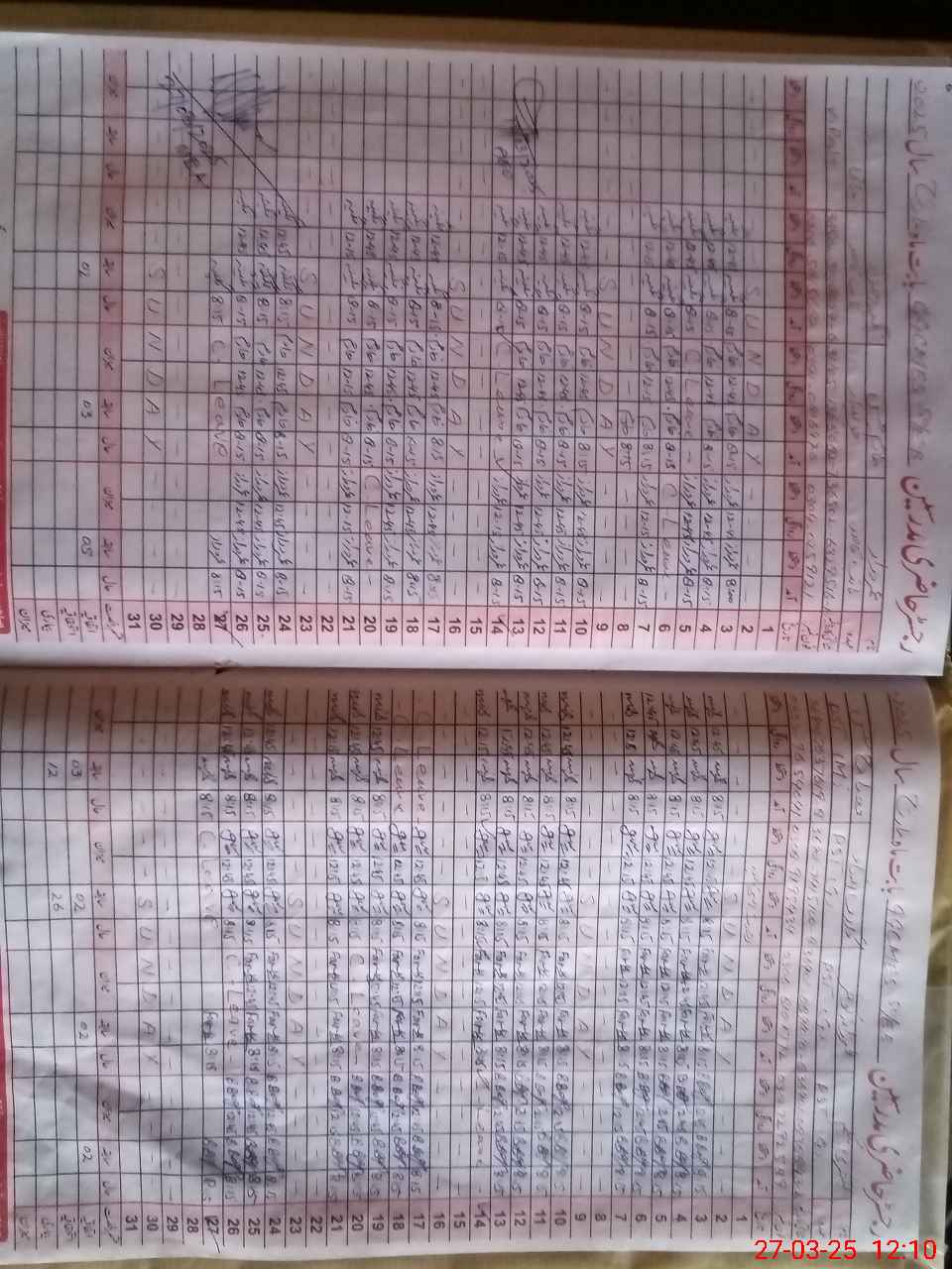 | 36**** | Gu**** UnNi**** | PST | Regular | 27 | 0 | 0 | 0 | 0 | 0 | 0 | 0 | 27 | Casual |