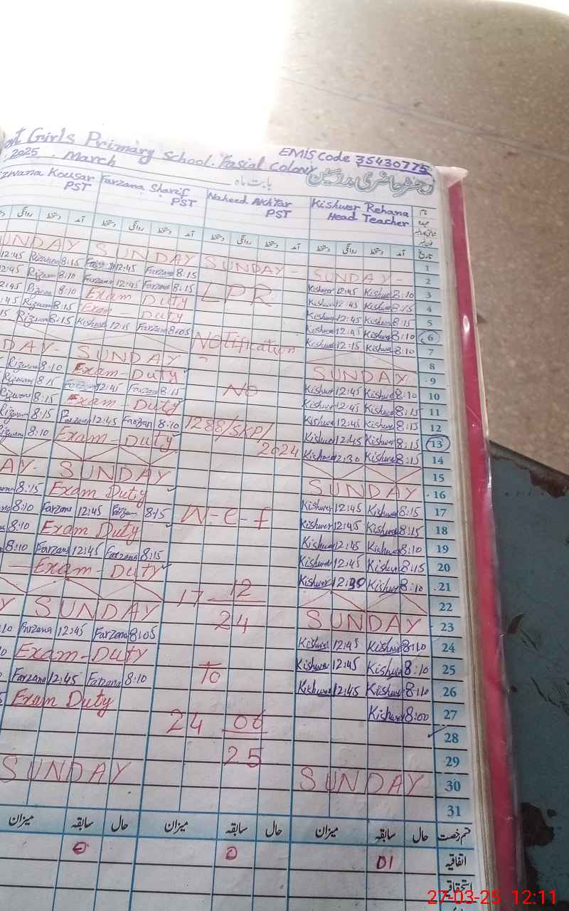 | 35**** | Fa**** Sh**** | PST | Regular | 0 | 0 | 0 | 0 | 0 | 0 | 0 | 0 | 0 | Exam Duty |