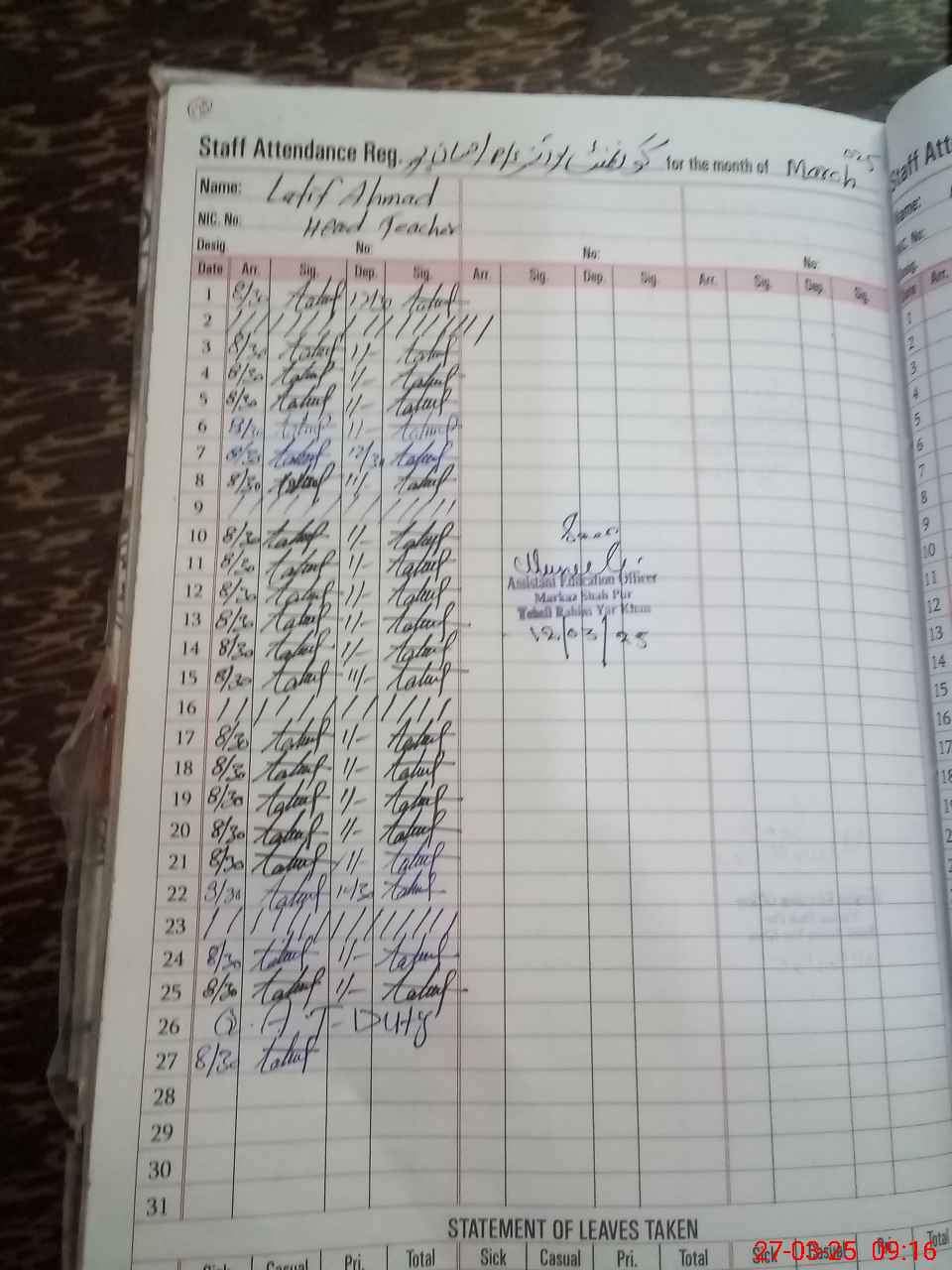 | Name: LA**** AH**** Designation: (School Headmaster's/Headmistress's) PST Phone/Cell Number: 03**** |