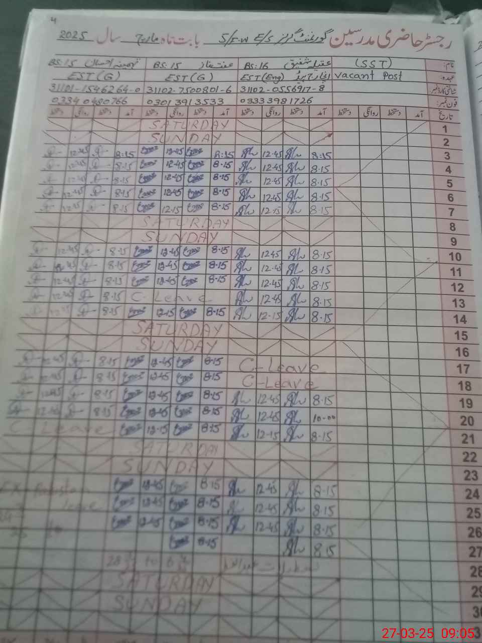 | 35**** | Na**** Ak**** | PST | Regular | 0 | 0 | 0 | 0 | 0 | 0 | 0 | 0 | 0 | Casual |