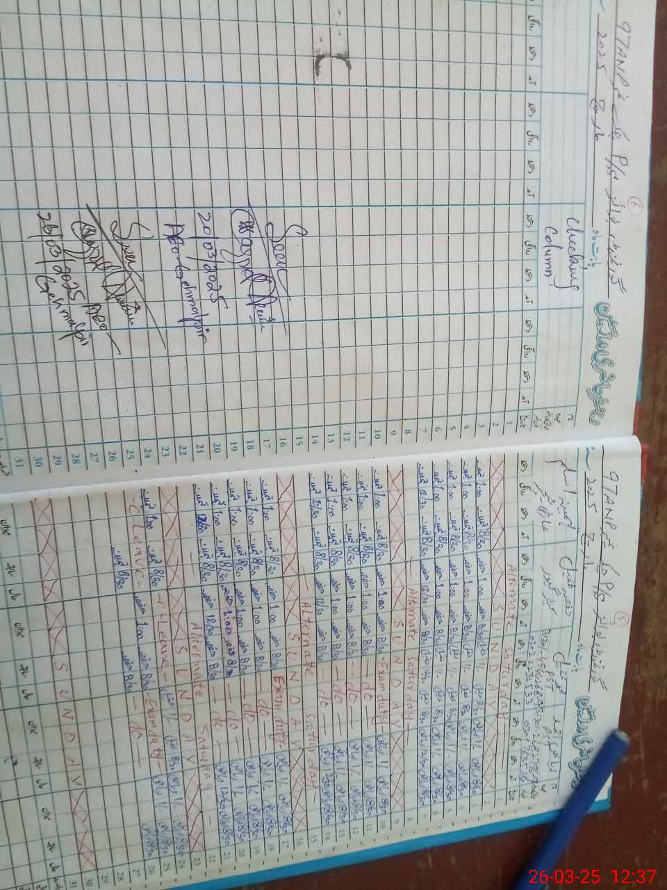 | CNIC | Full Name | Designation | R/C | Absence During Last Calender Month |