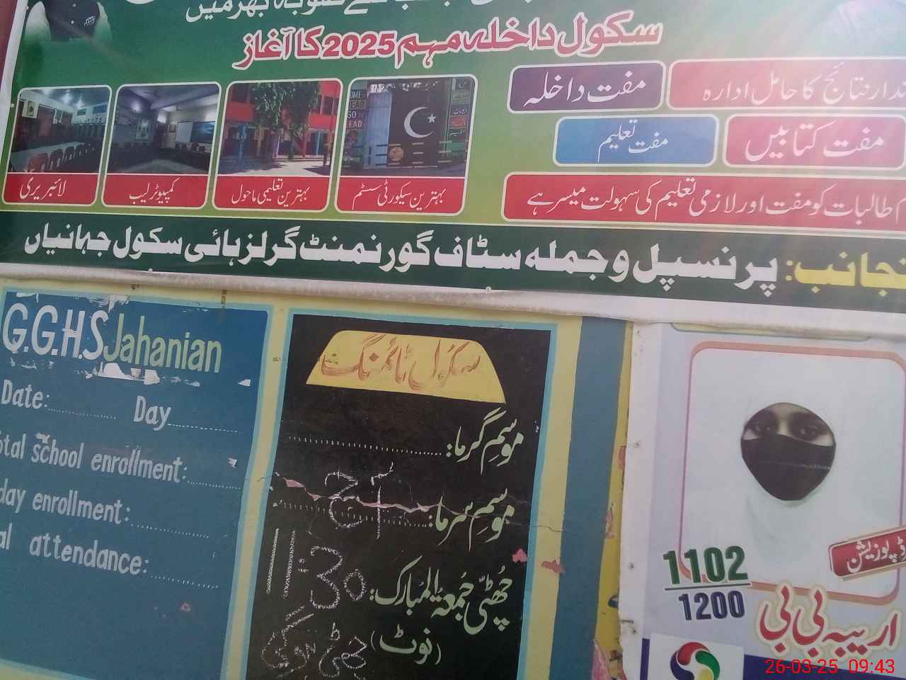 | EMIS Code: 36440055 | Name of School: GGHS JAHANIAN, JAHANIAN | |||