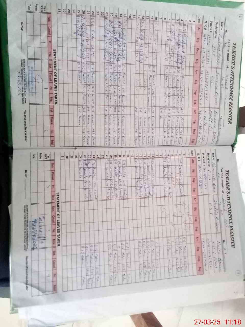 | Name: Za**** Pe**** Designation: (School Headmaster's/Headmistress's) Sst Gen Phone/Cell Number: 03**** |