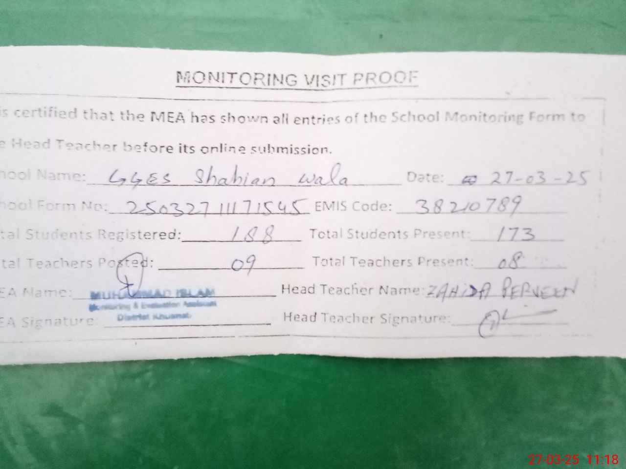 | EMIS Code: 38210789 | Name of School: GGES SHAHIAN WALA | |||