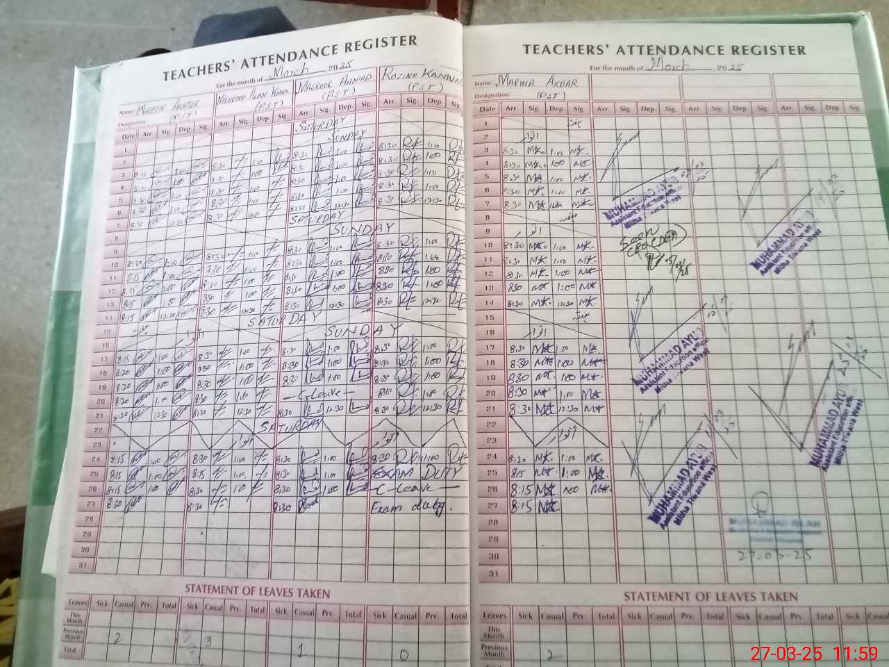 | 38**** | Ro**** Ka**** | PST | Regular | 0 | 0 | 0 | 0 | 0 | 0 | 0 | 0 | 0 | Exam Duty |
