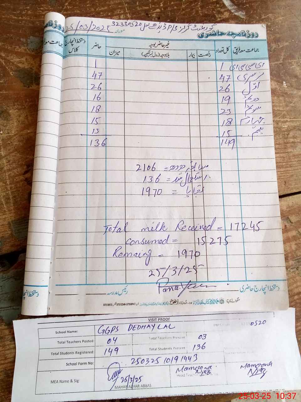 | Attendance Register | Head Teacher | MEA with School | Visit Proof |