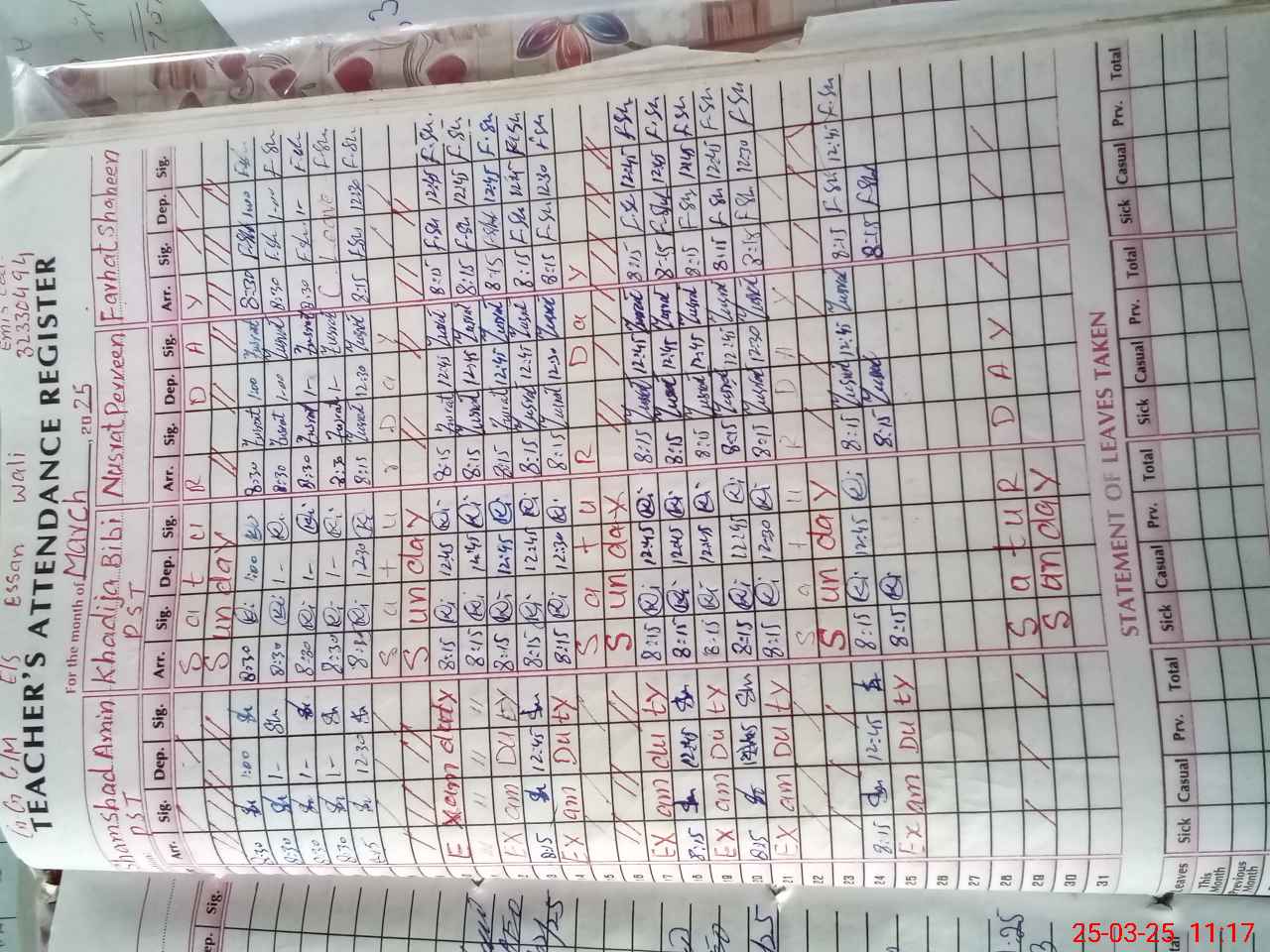 | 32**** | Sh**** Am**** | PST | Regular | 0 | 0 | 0 | 0 | 0 | 0 | 0 | 0 | 0 | Exam Duty |
