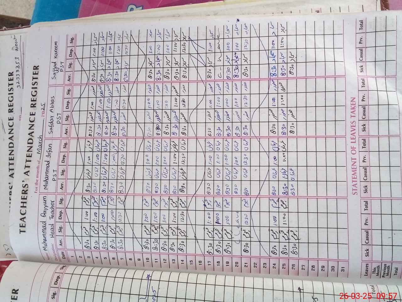 | 32**** | Sy**** Im**** Al**** Ra**** Sh**** | Contract | 2 | 0 | 0 | 0 | 0 | 0 | 0 | 0 | 2 | Exam Duty | |